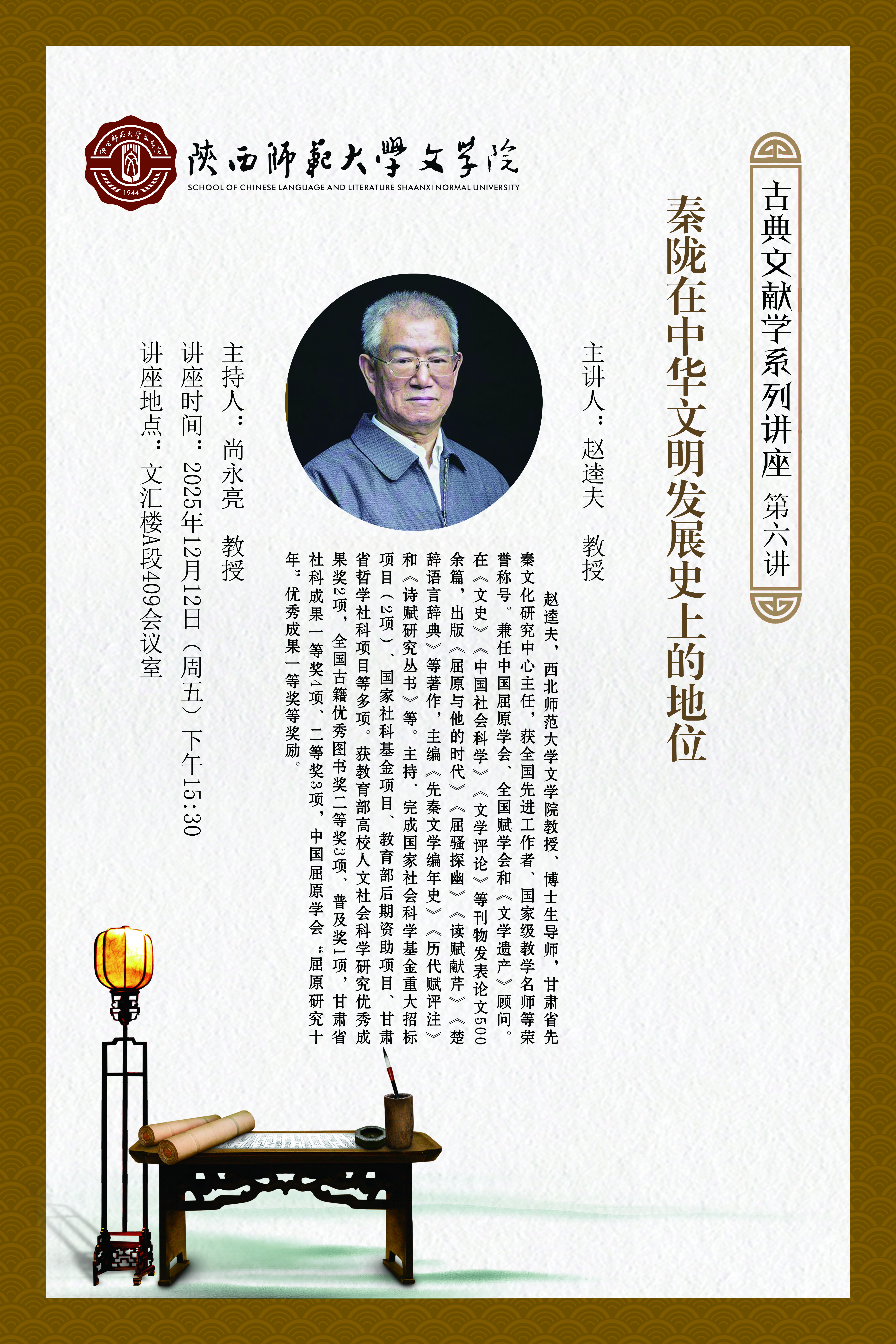 长安学术讲座第600期|阎晶明、谭桂林:漫谈当代“鲁学”与文学研究(通讯员:张鹏)12月5日下午,我院主办的长安学术讲座第600期在文汇楼A段215会议室举行。本次讲座特邀中国作家协会副主席阎晶明研究员、湖南大学谭桂林教授联袂主讲。李继凯教授主持,院长李跃力教授总结发言,中国现当代文学教研室杨辉、冯超、童一菲、任杰及硕博士研究生共同参与。阎晶明研究员以“鲁迅研究的当代性”为主题,强调将鲁迅研究与当今时代建立联系的重要性。...