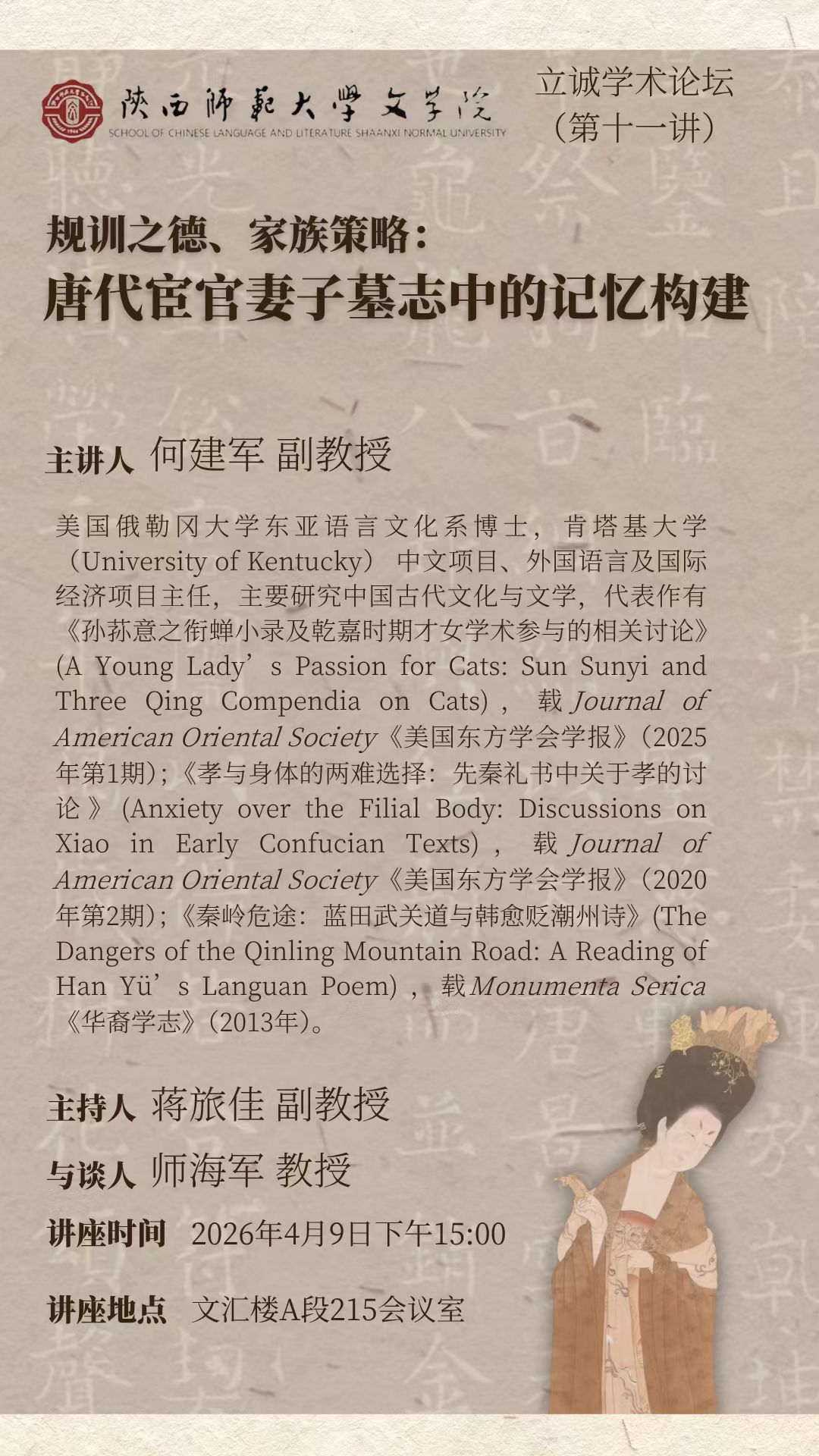 (通讯员:王星)4月10日—12日,中国唐代文学学会第二十三届年会暨唐代文学国际学术研讨会在海口隆重召开。本次年会由中国唐代文学学会与海南大学联合主办,海南大学人文学院承办。作为唐代文学研究的重镇,陕西师范大学文学院师生一行9人参加会议,包括教授5人、青年讲师1人、博士生3人。刘锋焘、傅绍良、王伟、魏景波、师海军5位教授分别主持或参加小组评议,并围绕杜甫、白居易的诗学阐释、石刻文献研究整理、唐代文学研究的多元视角等议题展开深入讨论。...