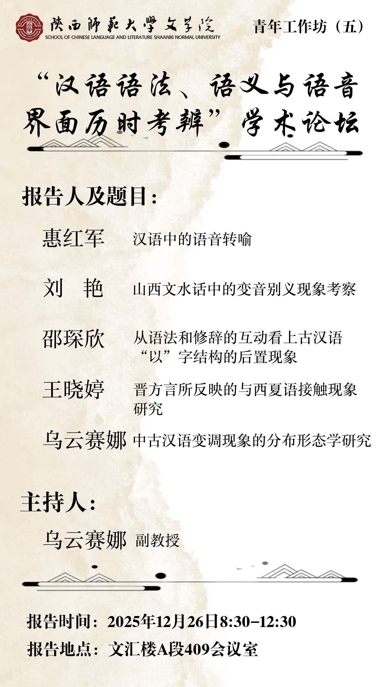 (通讯员:赵婧伊)12月14日,我院2025年学术年会在我校长安校区文汇楼举行。西北师范大学文学院教授赵逵夫、青年教师田有余,社会科学处副处长史红庆,学院院长李跃力、党委书记闫文杰,党委副书记、纪委书记刘笑,副院长王晓鹃、赵文、周广干、李胜振,学院全体教师及部分博士后、硕博研究生、本科生参会。年会由科研副院长王晓鹃主持。开幕式上,史红庆首先致辞。他立足国家哲学社会科学发展大局,结合近几年学术研究趋势变化,系统梳理了国家社科基金在选题导向、...