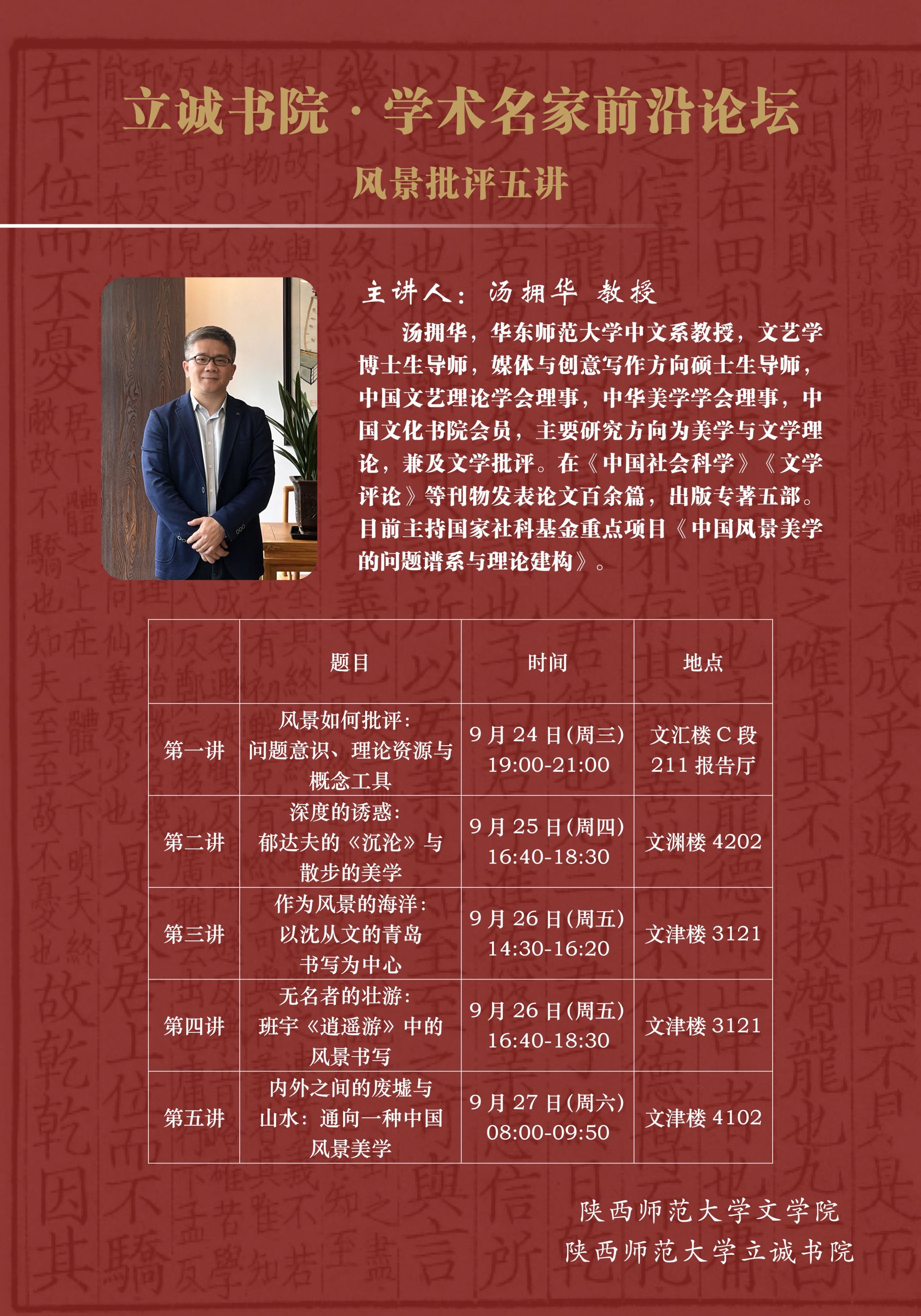 我院开设“立诚书院·学术名家前沿论坛”系列课程:汤拥华教授首讲