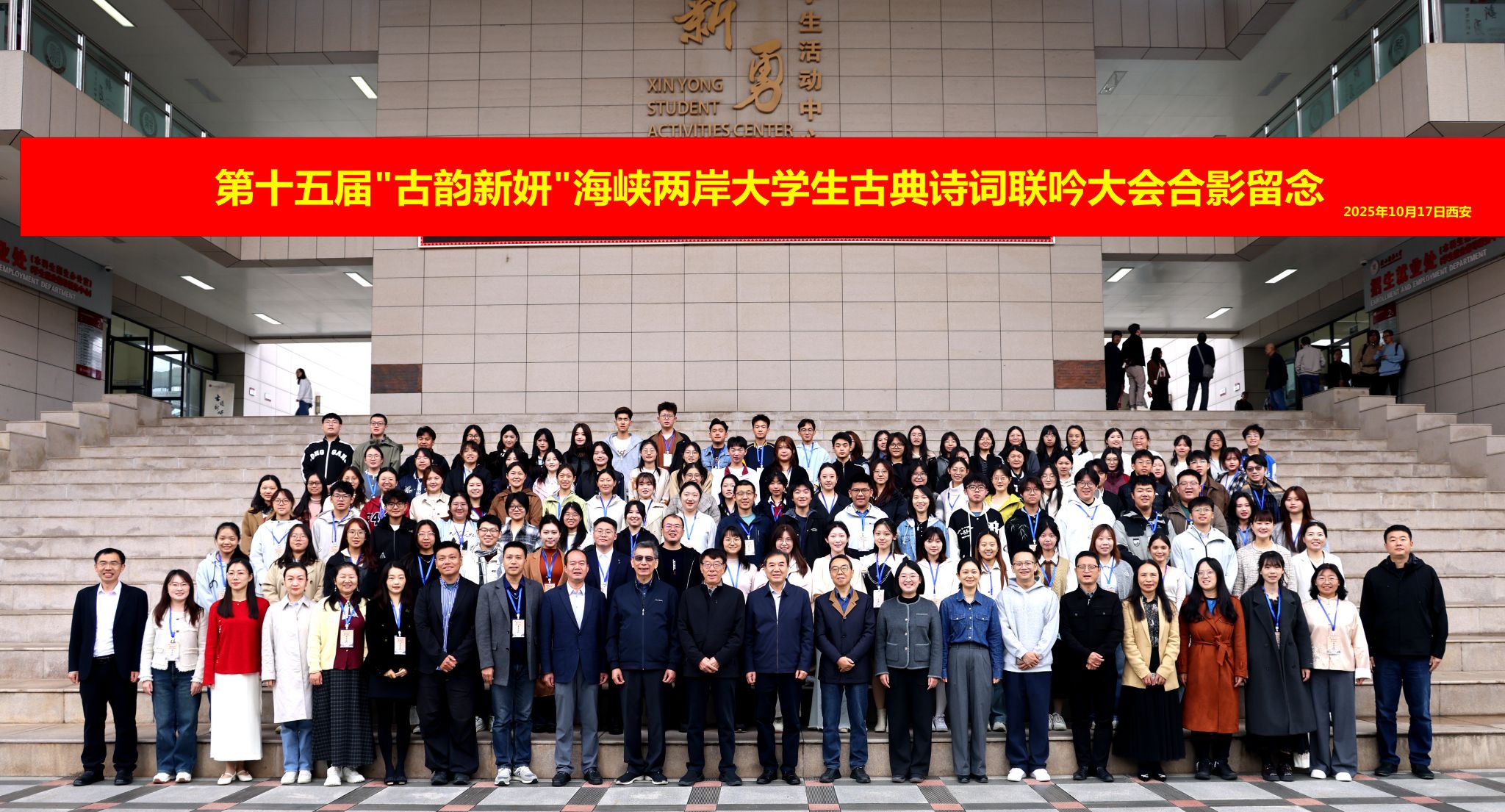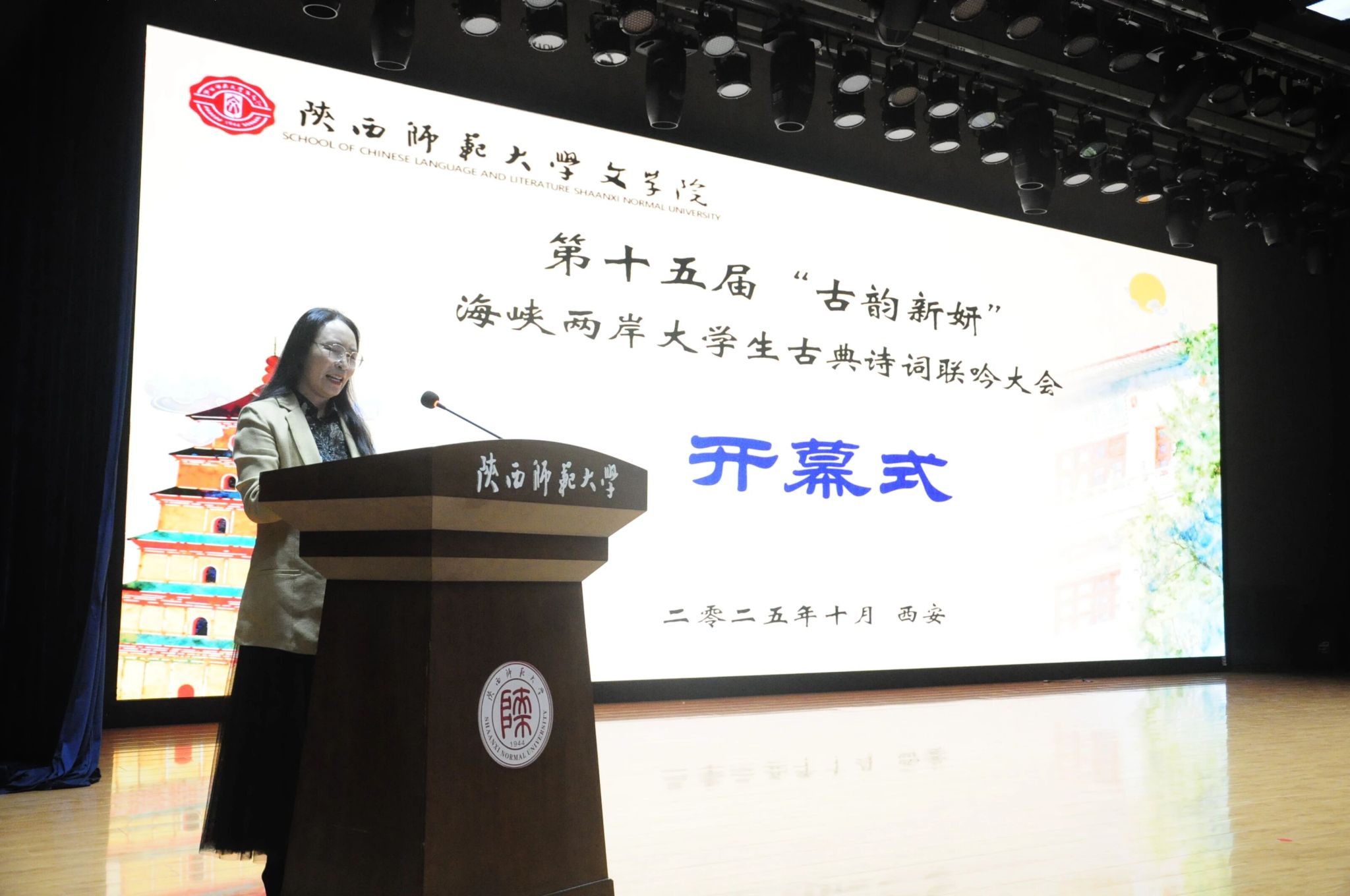 10月18日,由陕西师范大学主办的第十五届“古韵新妍”——海峡两岸大学生古典诗词联吟大会召开。来自北京师范大学、台湾辅仁大学、甘肃民族师范学院、江苏师范大学、中南大学、西北师范大学、淮阴师范学院、西北工业大学、邯郸学院、西安音乐学院和陕西师范大学的百余名学者和诗社学生齐聚一堂,吟诵千古诗词,共叙文化情缘。