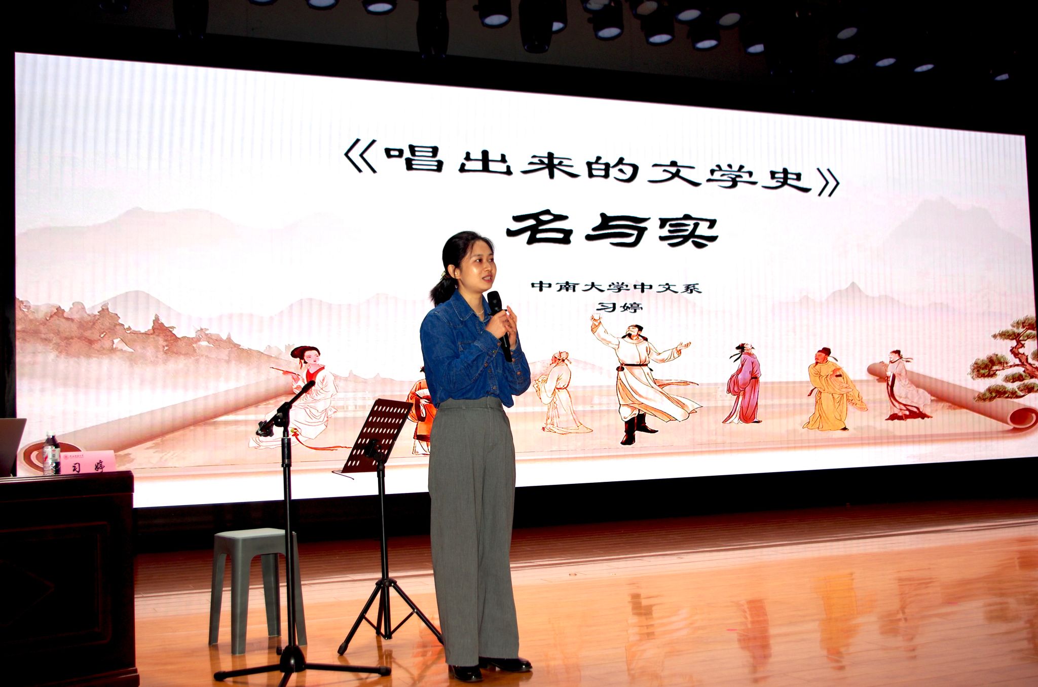 尚永亮教授借柳宗元《江雪》《与浩初上人同看山寄京华亲故》二诗,探讨其诗歌中的寂寞心境与艺术表现手法;习婷副教授介绍书籍《唱出来的文学史》,讲述如何通过吟唱方式诠释古典诗歌音乐性,探索古谱在当代诗词配乐中的应用,为文学教育提供新路径;孙永忠教授结合闽南语吟唱探讨诗学教育、吟唱文化传承创新及不同艺术形式在诗词表现中的应用与挑战,并通过现场互动展现两岸文化的传承与创新。