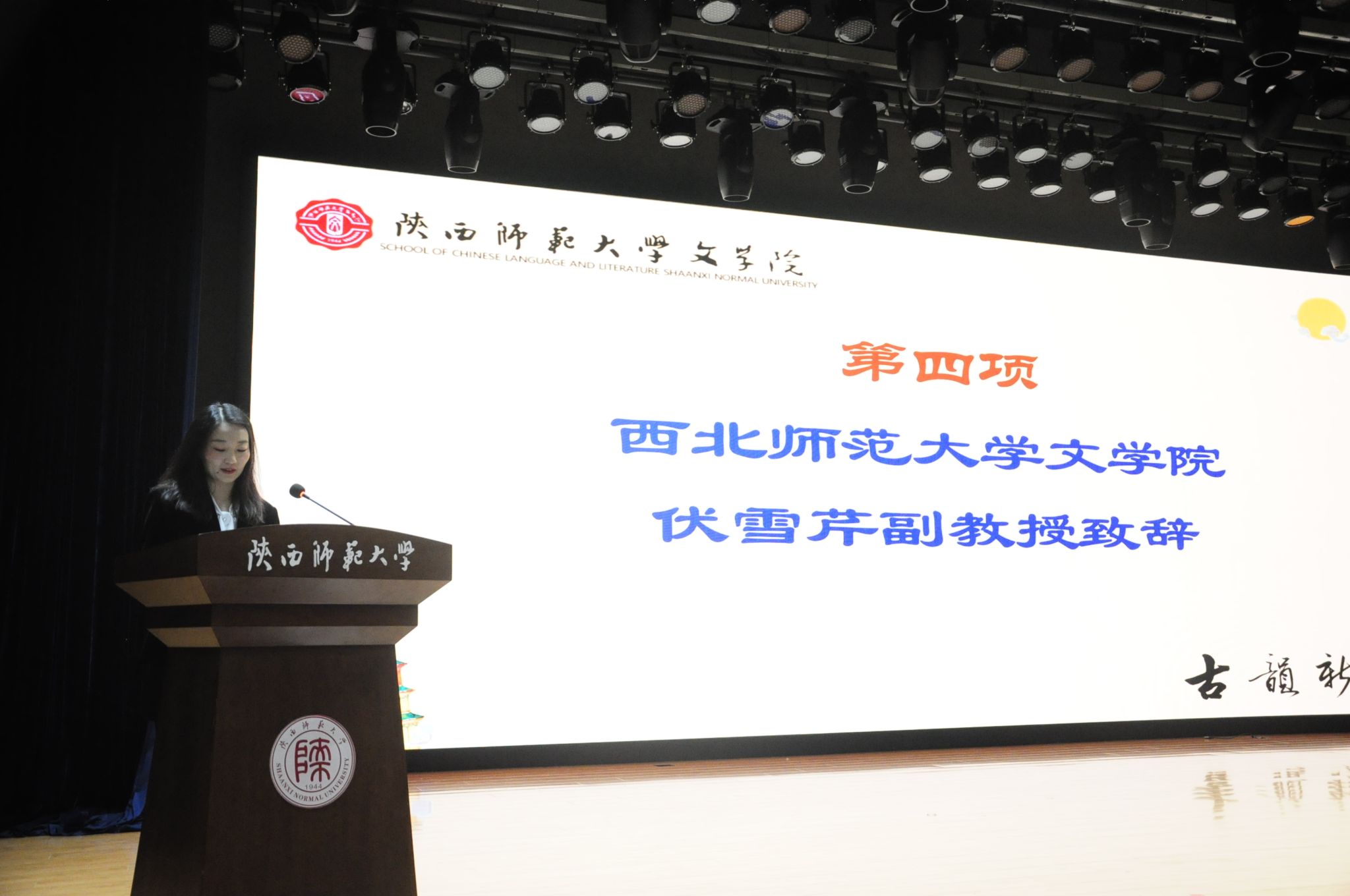 开幕式在我校新勇学生活动中心二层学生剧场举行。陕西师范大学校长助理、党委校长办公室主任袁一芳,陕西师范大学文学院尚永亮教授,中国台湾辅仁大学孙永忠教授,西北师范大学伏雪芹副教授先后致辞。